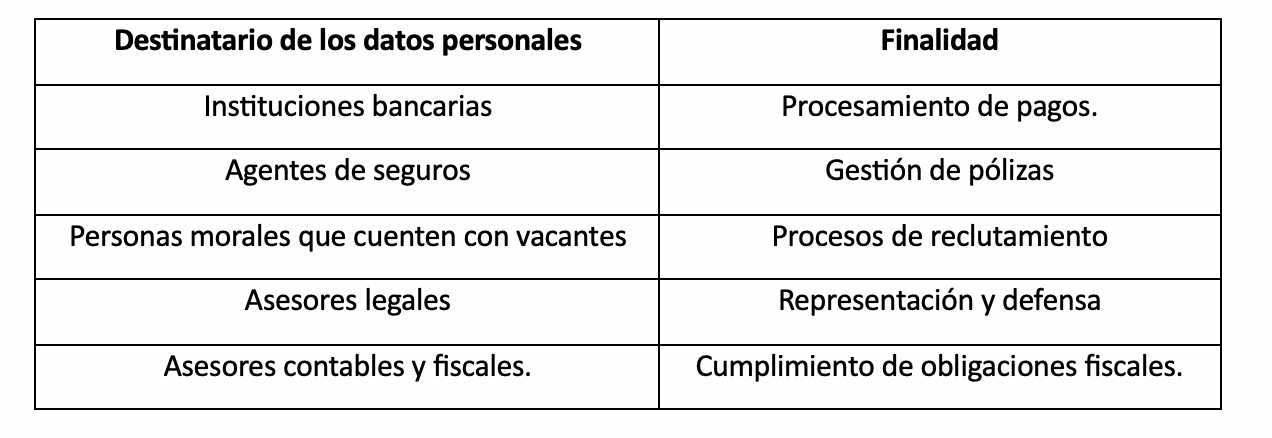 Le informamos que sus datos personales son compartidos dentro del país con las siguientes personas, empresas, organizaciones o autoridades distintas a nosotros, para los siguientes fines: